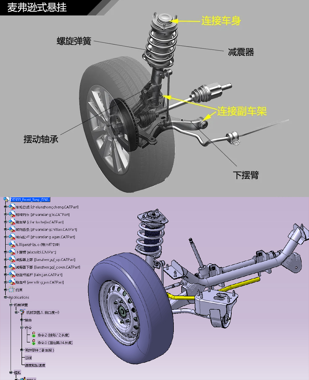 ▲麦弗逊式悬着挂