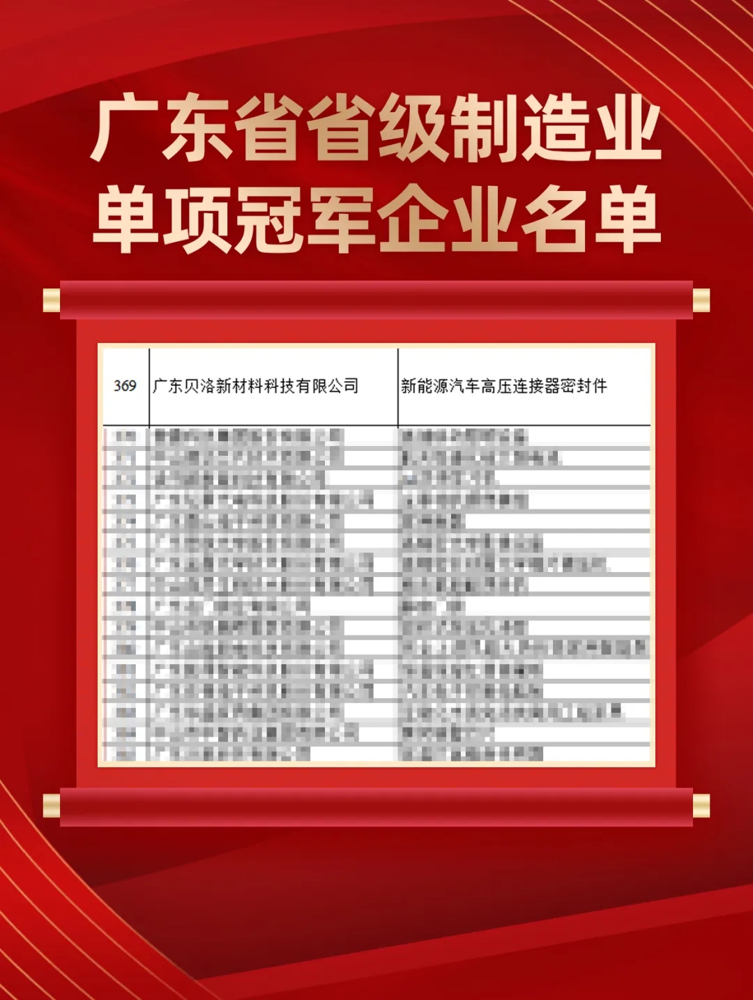 “广东省制造业单项冠军”是广东省制造业领域的最高荣誉之一,认定标准极为严苛,J9直营集团以“新能源汽车高压连接器密封件”作为主导产品获此殊荣,是本次唯一一家高压连接器密封件企业,这是对高压连接器市场与密封技术实力的最佳诠释。