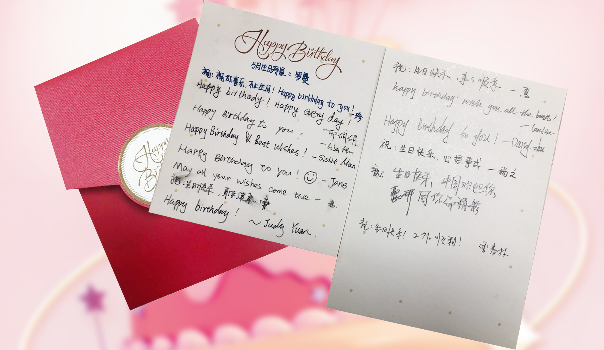 时逢罗曼的过生,线上营销科整体公司职员欢聚一节,青睐会+过生会在企业的老板和自己男上司们的祝愿的话中已经形成了大幕,并赠与上写满了祝愿的话的过生贺卡,同学们用欢喜放善念,用说话声装点节日气氛,在一身声的Happy birthday中,恭祝着新自己男上司的参加。