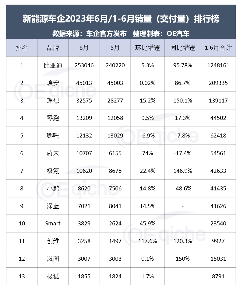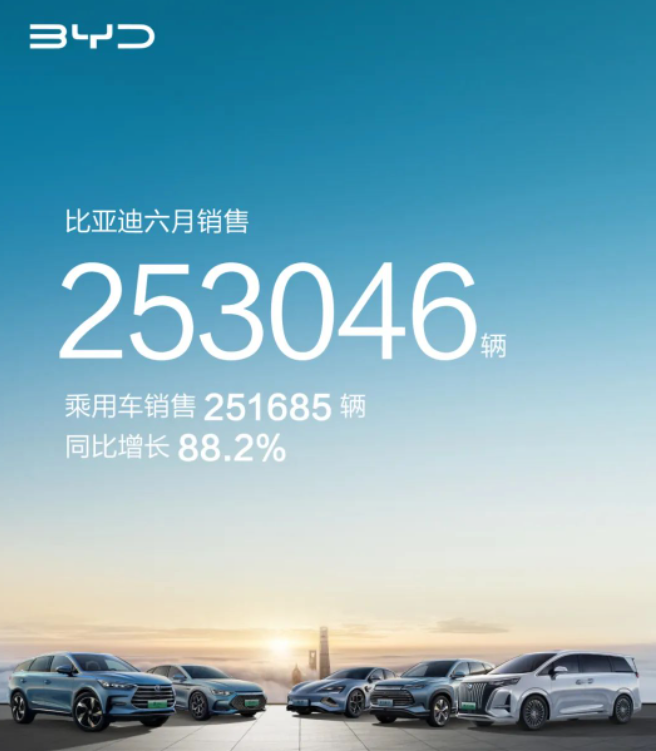 6月新能源汽车销量排行:比亚迪狂销25万辆,蔚来重回万辆,理想首破3万大关