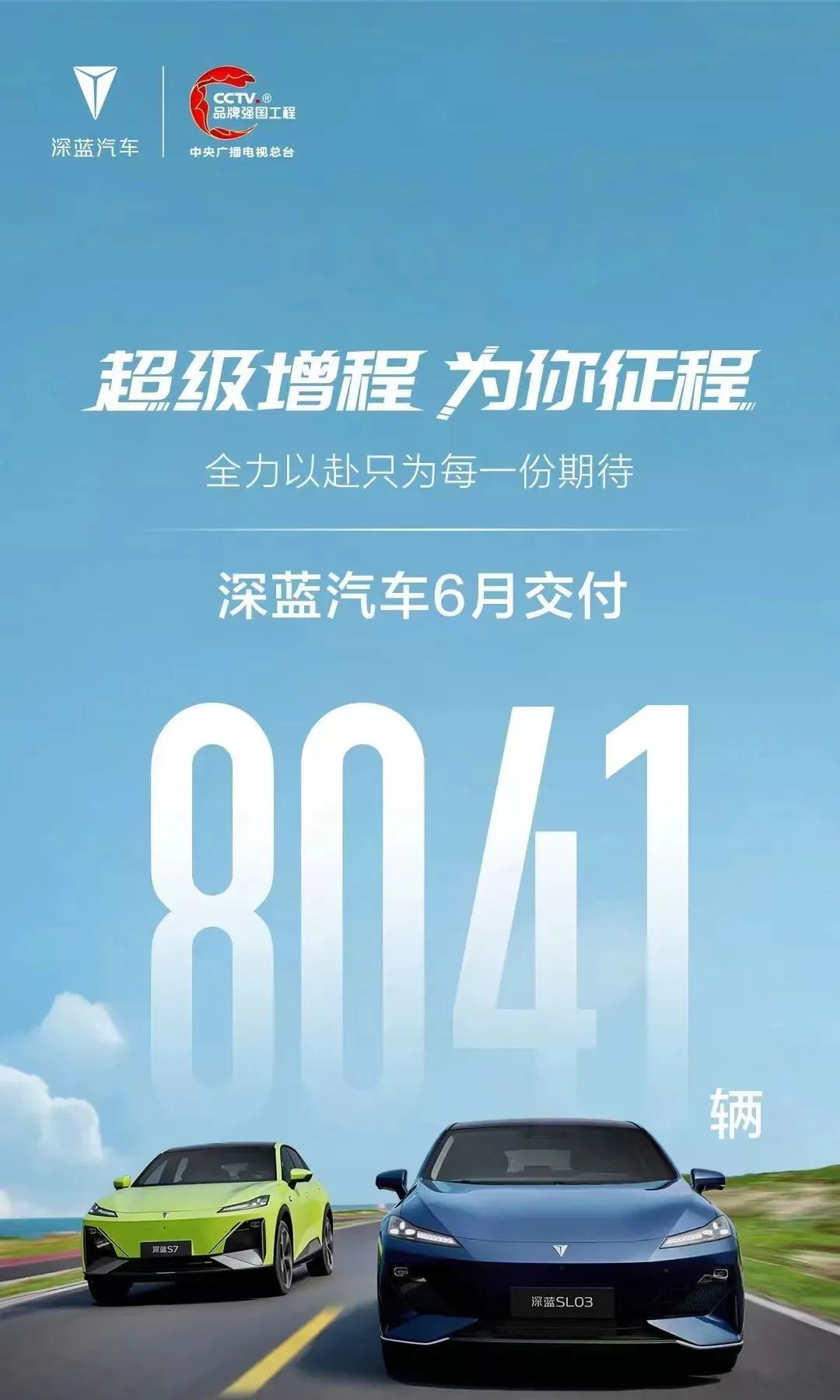 202几年6月,深蓝全系两厢车支付8041辆,深蓝S7在6月30日启动大企业规模支付。
