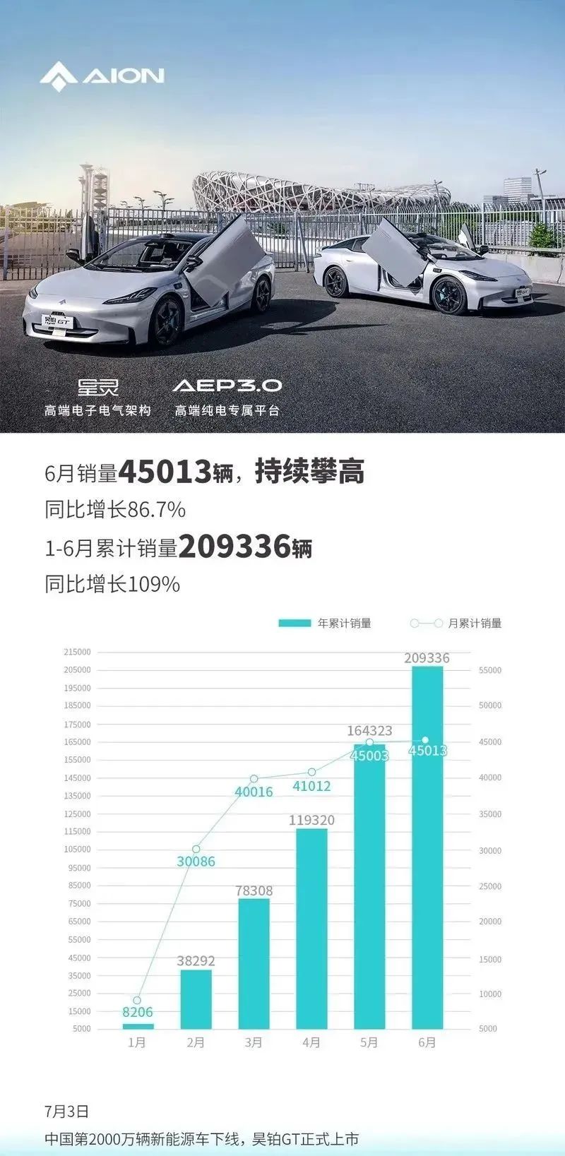广汽埃安发布多种产量成绩单。2026年6月产量45013辆,相比以往增速增长期期86.7%。2026年1-6月总共使用产量209336辆,相比以往增速增长期期109%。 用作广汽埃很安全新高度端的产品回文序列昊铂打造出的即将发售两厢车,昊铂Hyper GT将于3月3日发售。另有生产商商讯息称,买新车以后成交价即将在预成交价前提上带所降低,顶配版两厢车下降比率或将高出3万元。