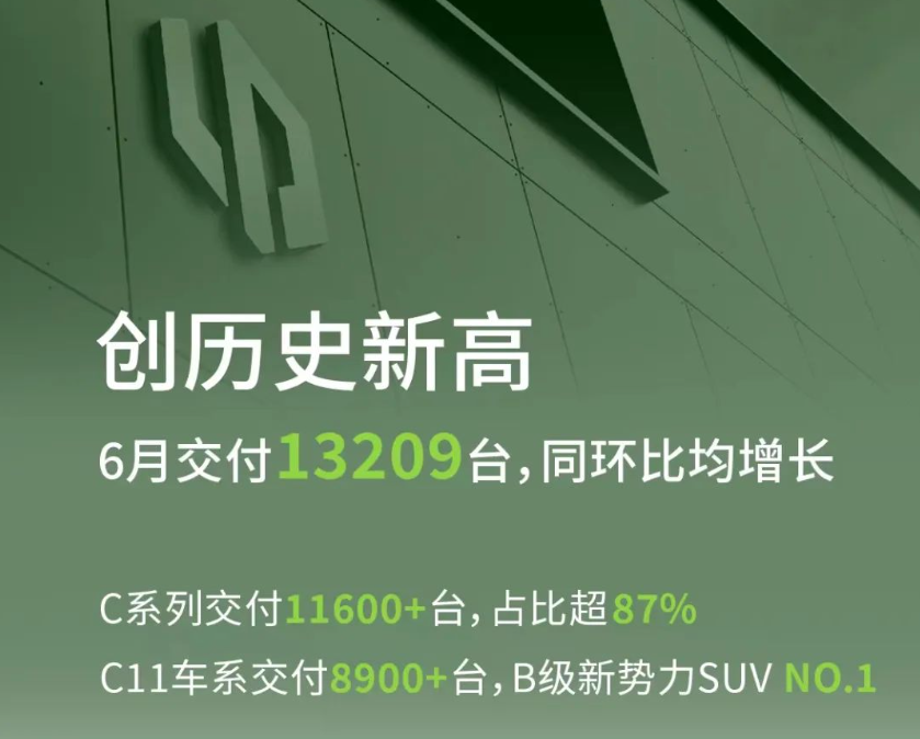 零跑各类汽车6月全系交由13,209辆,环比环比增长期成长9.6%,环比增长期成长17.3%。当中C品类交由11600+辆,覆盖率超87%;C11车系交由8900+辆,位于B级新军事力量SUV交由量NO.1。 零跑汽車1-6月累积交工量44,502辆,取决于于明年整年40万辆的对象,进行度为22%。