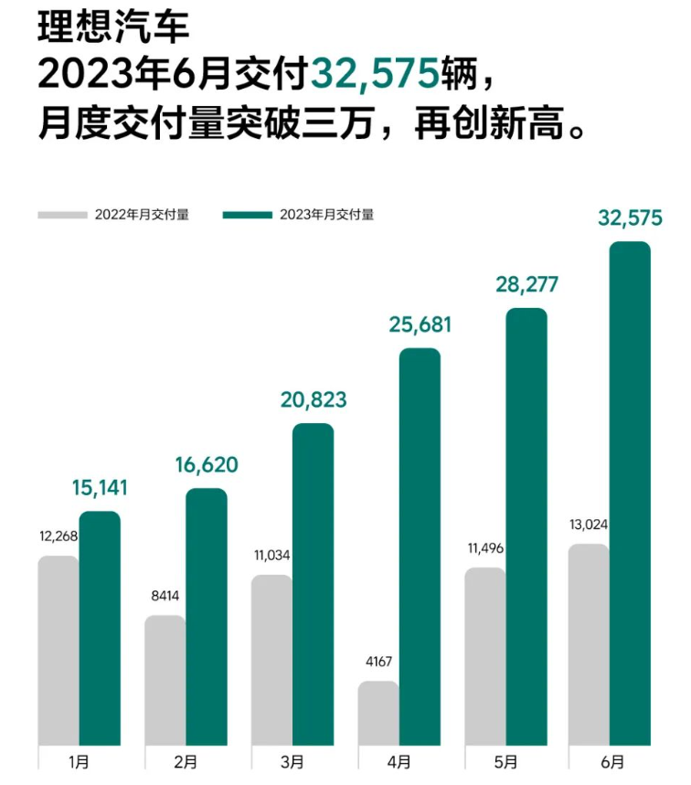 6月,梦想总数支付新汽车32575辆,季度支付第一次 突破点叁万辆,提高的增加15.2%,环比的增加150.1%,坐稳新派系销冠职位。 近几年二上两年,理想型当年度交工量满足86533辆,环比成长成长201.6%。202两年多上两年的交工量以经小于2023年整年的交工量。