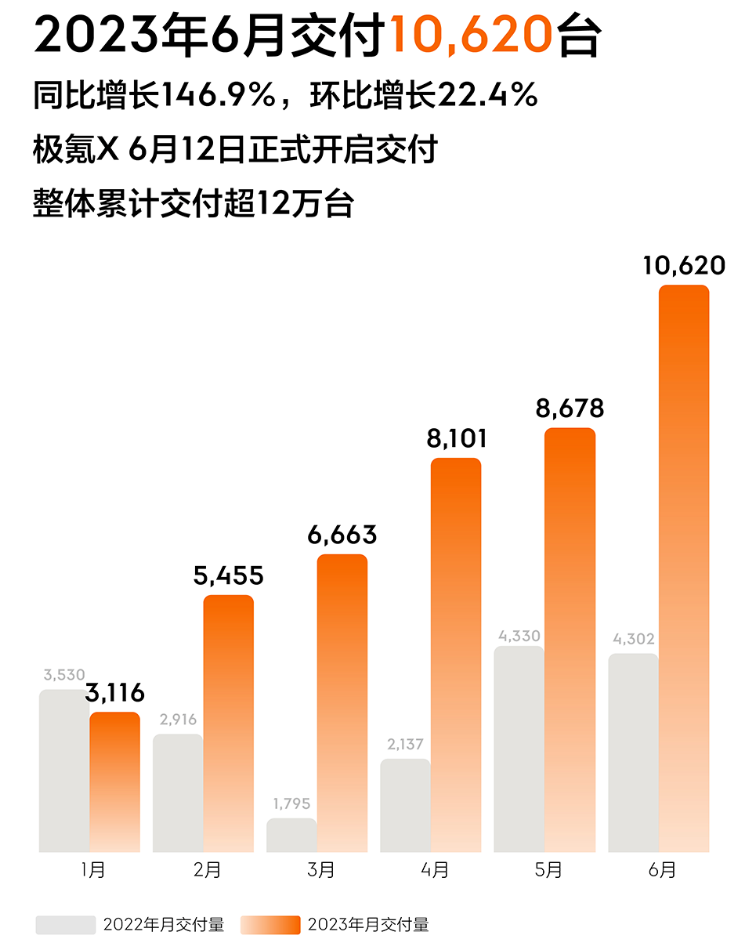 极狐货车6月共交给新小车1,855辆,环比同比增长期1.7%。近两个月大极狐货车保有量全在2000的样子,1-6月保有量合计8,791辆,极狐货车未能公开化流通渠道出炉202几年保有量关键,其明年保有量关键为4万辆,比较在今年的上1年的保有量,实现度为22%。